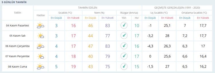 SALI parçalı bulutlu ve güneşli 17 derece ÇARŞAMBA parçalı bulutlu ve güneşli17 derece PERŞEMBE az bulutlu ve güneşli 18 derece CUMA parçalı bulutlu ve güneşli 19 derece olacak.