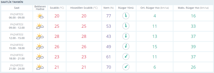 ÇARŞAMBA: Parçalı bulutlu, 28 derece