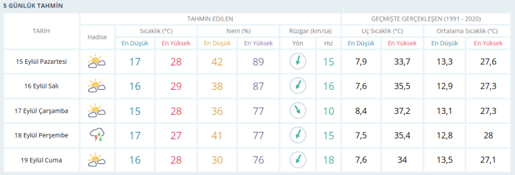İŞTE BURSA İÇİN 5 GÜNLÜK HAVA DURUMU TAHMİNİ (15 EYLÜL 2025)