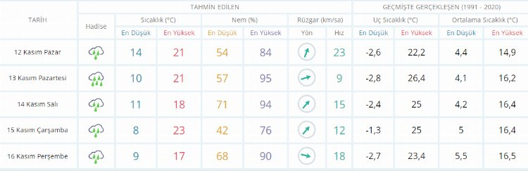 Diğer yandan Meteoroloji'nin Bursa için 5 günlük hava tahmin raporuda belli oldu.