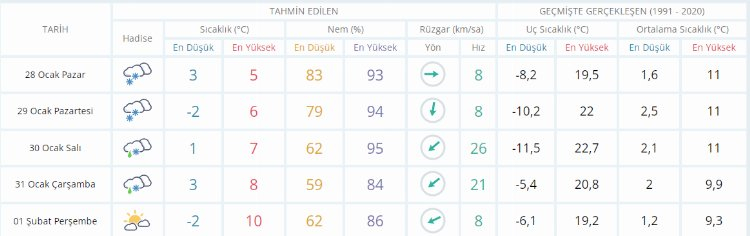 Diğer yandan Meteoroloji'nin Bursa için 5 günlük hava tahmin raporuda belli oldu.