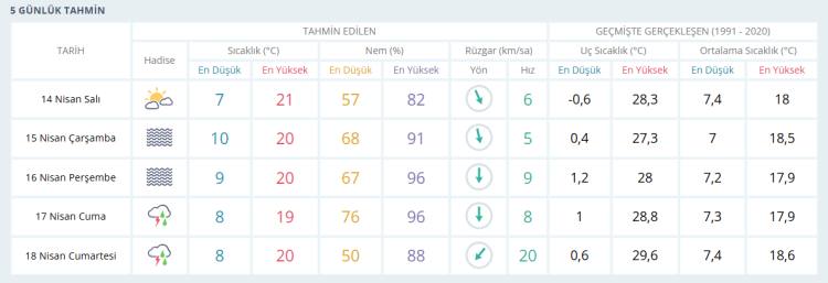 İŞTE BURSA İÇİN 5 GÜNLÜK HAVA DURUMU TAHMİNİ (14 NİSAN 2026)