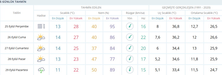 İŞTE BURSA İÇİN 5 GÜNLÜK HAVA DURUMU TAHMİNİ (25 EYLÜL 2025)