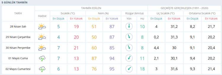 İŞTE BURSA İÇİN 5 GÜNLÜK HAVA DURUMU TAHMİNİ (28 NİSAN 2026)