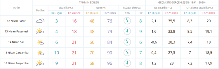 İşte Bursa için 5 günlük hava durumu tahminleri: