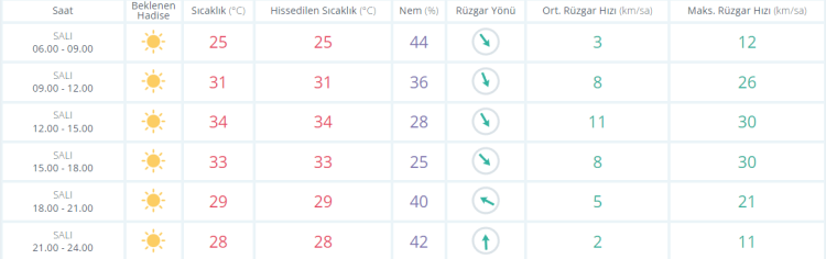 Öğle saatlerinde ise sıcaklıklar 34 derece olarak ölçülürken nem oranının ise düşüşe geçmesi ile birlikte kavurucu sıcak etkili oluyor.