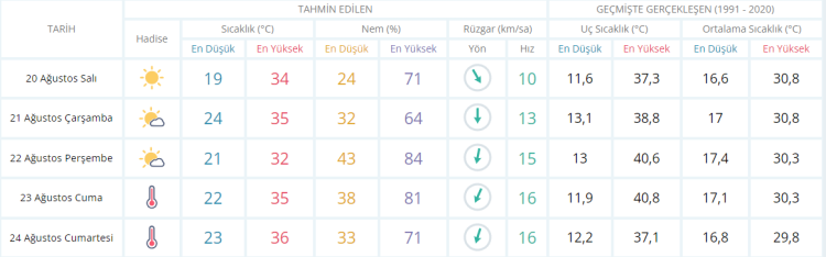 ÇARŞAMBA gününde hava sıcaklığı gün içinde 35 derece olurken nem oranı ise yüzde 64 oluyor.
