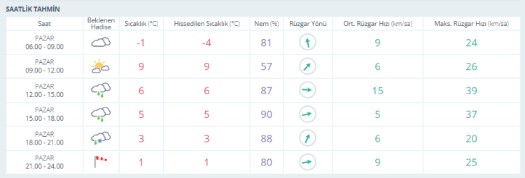 MGM, Bursa için gelecek haftanın hava tahmin raporlarını da paylaştı.