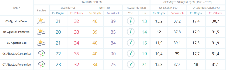 İşte Bursa için 5 günlük hava durumu tahminleri: