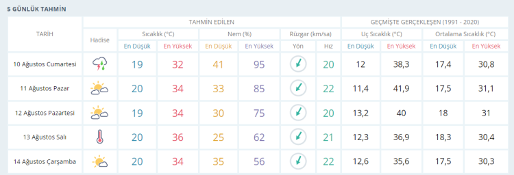 PAZAR parçalı bulutlu ve güneşli 34 derece PAZARTESİ parçalı bulutlu ve güneşli 34 derece