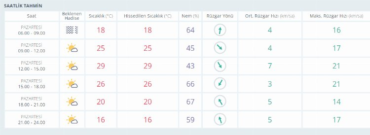 Haftanın üçüncü iş gününde (ÇARŞAMBA) sabah saatlerinde sıcaklık 11 derece seviyelerinde ölçülüyor. Gün içerisinde parçalı bulutlu ve güneşli gökyüzüyle birlikte termometreler 23 derece seviyelerinde ölçülüyor.