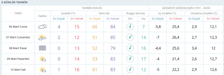BURSA'DA 5 GÜNLÜK HAVA DURUMU TAHMİNİ
