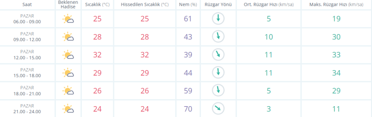 Öğle saatlerine doğru ise sıcaklıklar yükselişe geçerken dereceler 28'i gösteriyor.