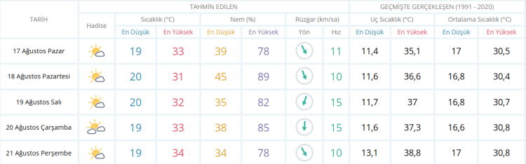 Meteoroloji Bursa için 17 Ağustos (Pazar) hava tahmin raporunu yayınladı. Hafta sonunun ikinci gününde sıcaklıklar 32 dereceye kadar yükselirken gün içerisinde az bulutlu bir gökyüzü ile birlikte bunaltıcı sıcaklar etkili oluyor. Öte yandan yeni hafta ise sıcak hava dalgası etkisini göstermeye devam ediyor. İşte Bursa için 5 günlük hava durumu detayları...