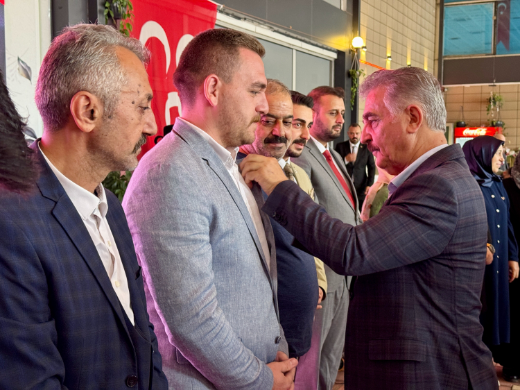 Konuşmanın ardından partiye katılanlara rozetleri takıldı.
