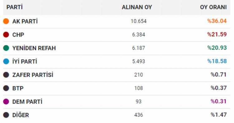 Cumhur İttifakı toplamda 9, CHP 6, İYİ Parti ise 2 ilçede seçimleri önde tamamladı.