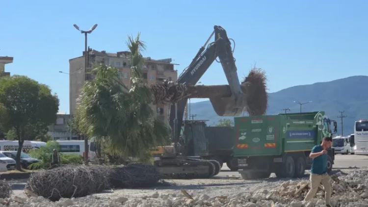 Büyükşehir Belediyesi ekipleri bir yandan yıkım çalışmalarını yürütürken, diğer yandan da terminal çevresinde bulunan ağaçları söktü.