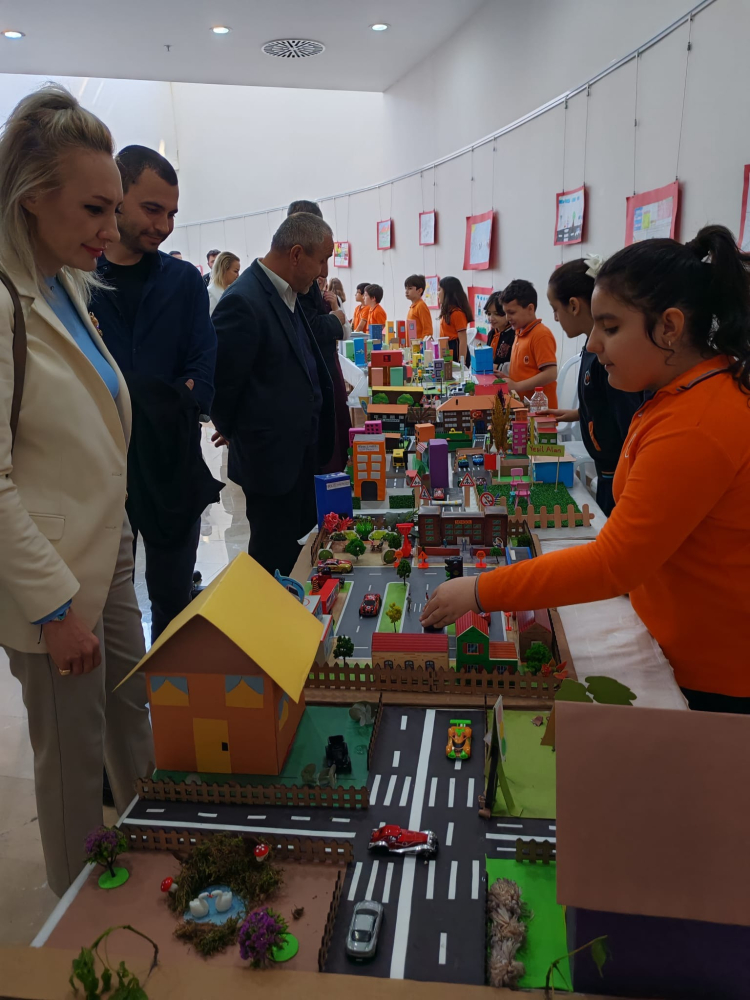 Bursa'nın Osmangazi ilçesindeki Mümin Canbaz İlkokulu'nun öğrencileri Şehrin Akıllı Çocukları Projesinde aldıkları görev neticesinde ortaya koydukları şehir maketleri ile bir sergi düzenledi.