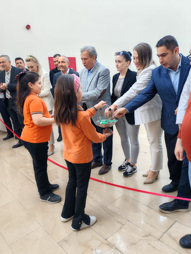 Okul hayırseveri Mümin Canbaz'ın da katıldığı bu sergide dördüncü sınıf şube öğretmenleri, öğrencileri ile birlikte gelen ziyaretçilere eserlerini tanıttı.