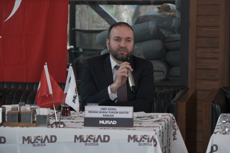 Toplantının açılış konuşmasını yapan MÜSİAD Bursa Şube Başkanı Alparslan Şenocak, turizmin yalnızca ekonomik kalkınmanın motoru olmadığını, aynı zamanda şehirlerin ve ülkelerin tanıtımında, kültürel mirasın korunmasında ve uluslararası ilişkilerin güçlendirilmesinde kritik bir rol oynadığını vurguladı. Şenocak, "Bursa, sahip olduğu doğal güzellikler, tarihi miras ve kültürel çeşitlilik ile turizmde büyük bir potansiyele sahip. Ancak bu potansiyelin tam anlamıyla değerlendirilmesi için daha etkin bir strateji, güçlü bir iş birliği ve ortak akıl gerekiyor. Bu noktada kamu, özel sektör ve sivil toplum iş birliğinin güçlendirilmesi büyük önem taşıyor. Turizmi yalnızca belli bir sezona sıkıştırmadan, 12 ay boyunca canlı tutacak, destinasyon odaklı ve sürdürülebilir bir model oluşturmalıyız. Bursa'nın termal turizm, gastronomi ve doğa sporları alanındaki zenginlikleri, şehrin dört mevsim boyunca cazibesini artırmada kilit rol oynayacaktır. Aynı zamanda Uludağ'ın yalnızca kış turizmiyle değil, yaz ve bahar aylarında da etkin şekilde kullanılması sağlanmalıdır. Turizmin gelişimi, yalnızca belirli kurumların çabalarıyla değil, tüm paydaşların ortak çalışmasıyla mümkündür. Birlikte hareket ettiğimizde,turizmde daha rekabetçi, yenilikçi ve sürdürülebilir bir noktaya ulaşabiliriz" ifadelerini kullandı.