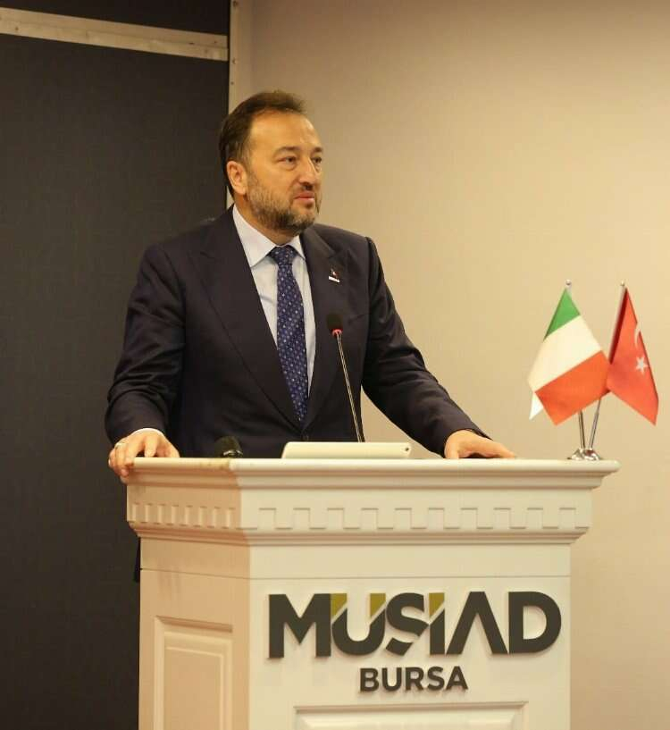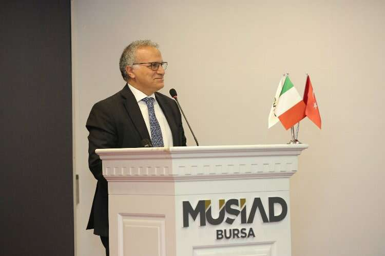 MÜSİAD Bursa Şubesi Yönetim Kurulu Başkanı Alparslan Şenocak, "Bursa'mız, İtalya ile ticari ilişkiler bağlamında çok önemli bir role sahip. Şehrimizden İtalya'ya ihracat yapan 511 firmanın yanı sıra yine şehrimizde faaliyet gösteren 38 İtalyan sermayeli firma mevcut. 2021'de Bursa'dan İtalya'ya 122 milyon dolar tutarında gerçekleştirilen ihracat, şehrimizi bu kategoride İstanbul'un ardından ikinci sıraya taşımıştır. Bu tablo; Bursa'nın üretim ve ihracat kabiliyetinin hem ulusal, hem de uluslararası arenada ekonomik anlamda ne kadar canlı olduğunu göstermektedir. İş dünyamızı Türkiye ile İtalya arasındaki güçlü iş birliğinin daha da derinleşmesine katkıda bulunmaya davet ediyorum. İnanıyorum ki, MÜSİAD Bursa'da oluşturduğumuz sinerji, çok önemli kazanımları beraberinde getirecektir." dedi.