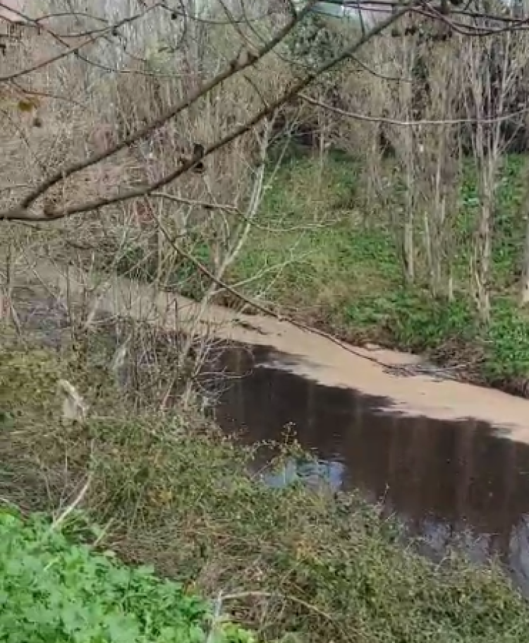 Vatandaşın kaydettiği görüntülerde dere suyunun simsiyah aktığı, yüzeyde bulanık ve kimyasal olduğu iddia edilen tabakaların oluştuğu görülüyor.