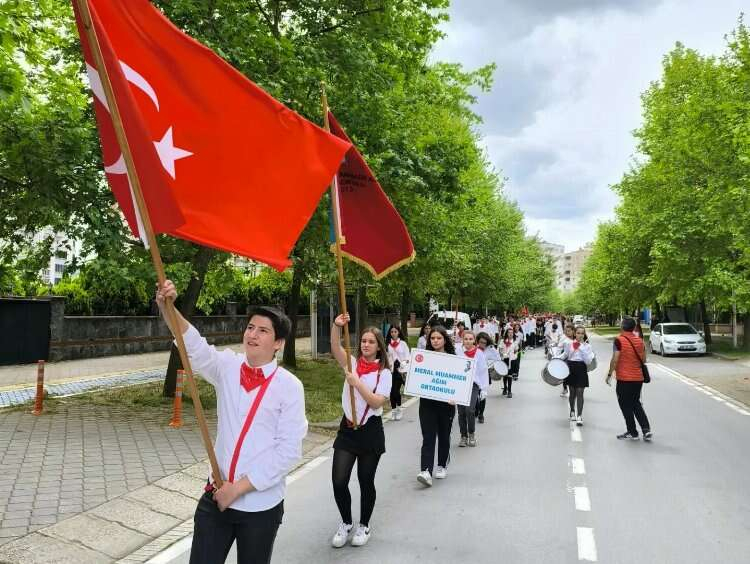 Meral Muammer Ağım Ortaokulu öğrencileri 23 Nisan Ulusal Egemenlik ve Çocuk Bayramı’nı kortej yürüyüşü ve çeşitli etkinliklerin düzenlendiği büyük bir coşkuyla kutladı.