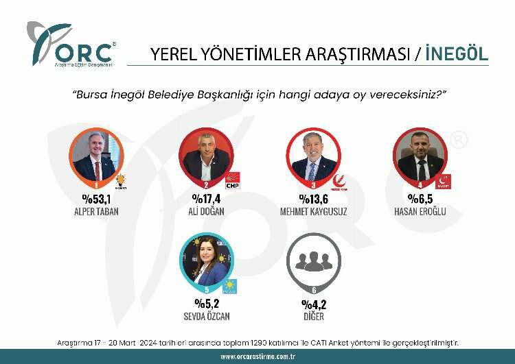 ORC Araştırma ayrıca Bursa'nın Nilüfer, İnegöl, Mudanya ve İznik ilçelerinde de bir anket gerçekleştirdi.