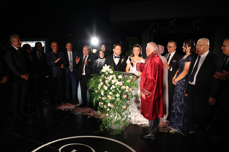 Bursa Büyükşehir Belediye Başkanı Mustafa Bozbey'in kıydığı nikahla hayatlarını birleştiren gençlerin nikah şahitliklerini ise Devlet eski Bakanı ve Artvin Milletvekili Faruk Çelik,