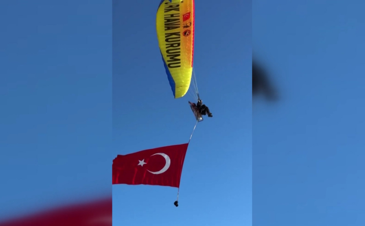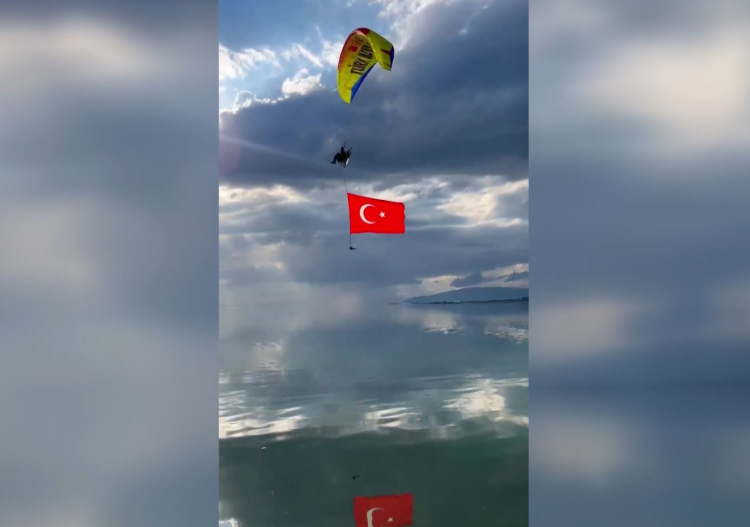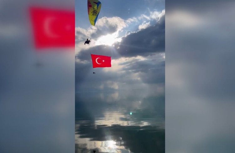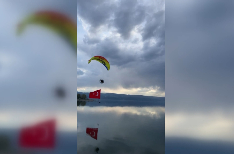 Paramotorla Bursa İznik Gölü üzerinde ay-yıldızlı şölen!
