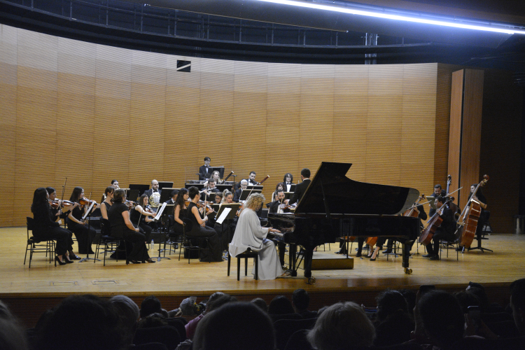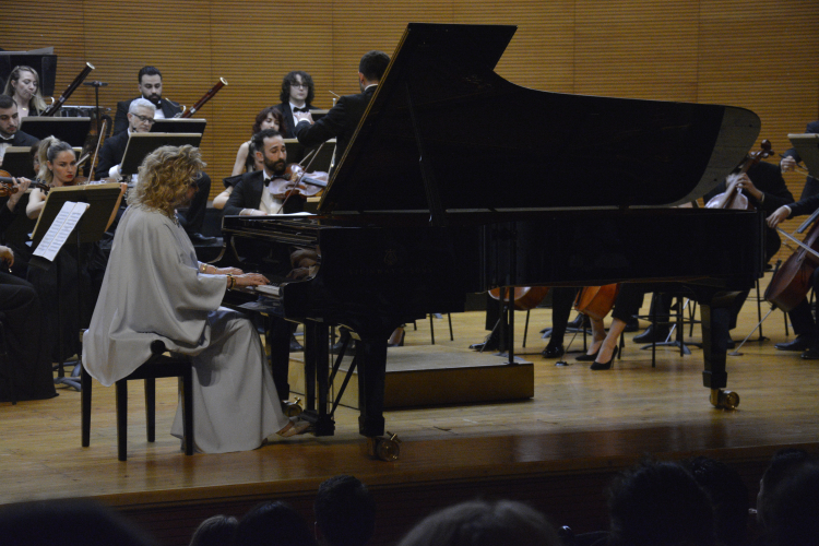 Bursa'da Nilüfer Oda Orkestrası tarafından düzenlenen "Senfoniye Müzikal Bir Yolculuk" konserinde piyanist Gülsin Onay sahne aldı.