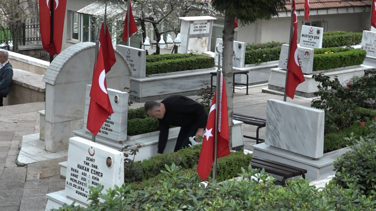 Şehit yakını İsmail Gökçen, "Biz her gün buradayım. Oğlumun yanındayım. 2008'de Şırnak'ta şehit oldu. Buradaki şehitlerimizle de yakından ilgilenirim" dedi.
