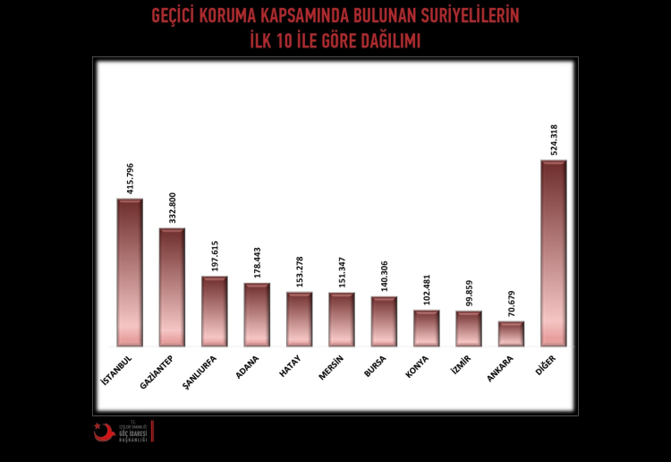 Türkiye'deki en çok Suriyelinin yaşadığı il sıralamasında İstanbul, Gaziantep, Şanlıurfa, Hatay, Adana ve Mersin'in ardından Bursa 7. sırada yer alıyor.