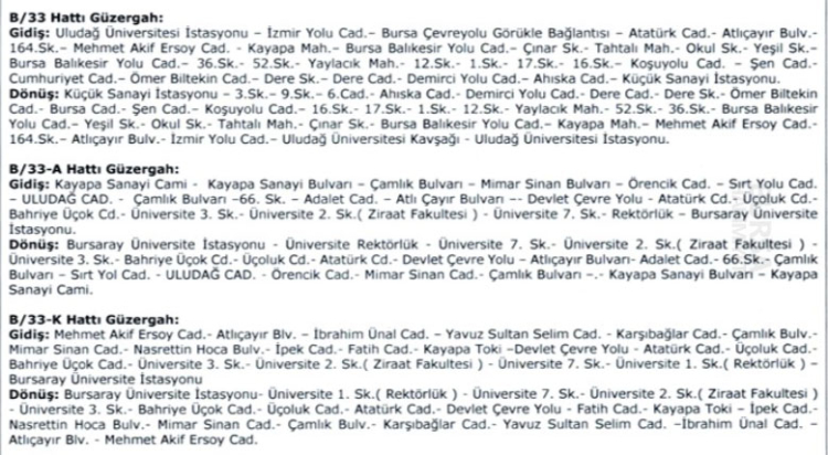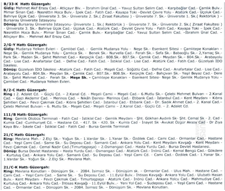 BURULAŞ'ın başvurusu sonrası Bursa'daki 9 otobüs hattının güzergahı değiştirildi. İşte o otobüs hatları...