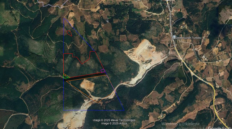 2 poligondan oluşacak 190 bin metrekarelik taş ocağının tamamının orman arazisinde olduğu öğrenildi.