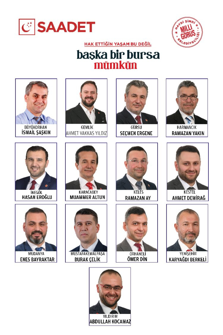 Saadet Partisi'nde yapılan temayüllerin ardından, Saadet Bursa'da 13 ilçenin Belediye Başkan Adayı belli oldu.