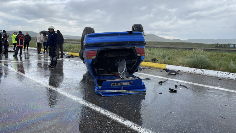 Sivas'ta karşı şeride geçip iki araca çarpan otomobil takla attı: 1 ölü