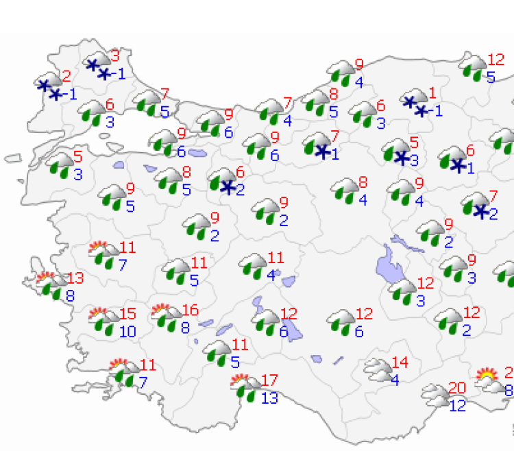 Öte yandan Meteoroloji'nin Bursa için yayınladığı günlük tahmine göre ise sıcaklıklar tek hanelerde gezerken gün içerisinde yağışlı hava etkisini gösteriyor.
