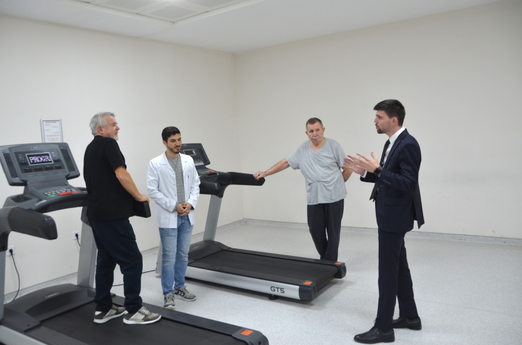 Tıp Fakültesinde aldığı eğitimle solunum hastalarına merkez bünyesinde pulmoner rehabilitasyon eğitimi vermeye başlayan Fizyoterapist Ahmet Gökburu ise, "Beraber yürüyüş bandında aerobik egzersizi, bisikletimizde ise yine aynı şekilde aerobik kapasitemizi arttırmak amacıyla çalışıyoruz. Daha sonrasında kas kuvvetini amacıyla dambıllarla çalışıyoruz. Burada amacımız hastaların akciğer oksijen kapasitesini arttırmak, egzersiz yapabilme kapasitesini arttırmak ve günlük yaşam aktivitelerini kendilerini daha rahat hissederek yapmalarını sağlamaktır. Bu şekilde onların yaşamına küçük bir dokunuş yapmış oluyoruz. Onların egzersizlerini düzenli bir şekilde devam ettirmelerini sağlıyoruz" şeklinde konuştu.