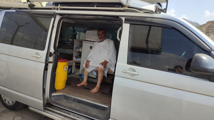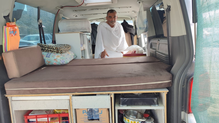 3 ay önce aracını karavana çeviren Özgür, Mekke'deki günlük yaşamını da kendi imkanlarıyla sürdürüyor. Banyo, tuvalet, su ve yemek konusunda herhangi bir sıkıntı yaşamadığını belirten Özgür, "Yemeğimi kendim yapıyorum. Türkiye'den gelirken kuru gıdalarımı getirdim" ifadelerini kullandı.