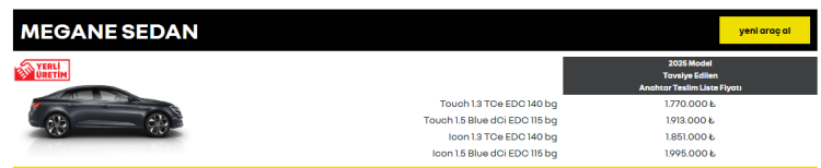Son gelen zamla birlikte Renault'un güncel araç fiyat listesi şue şekilde değişti: