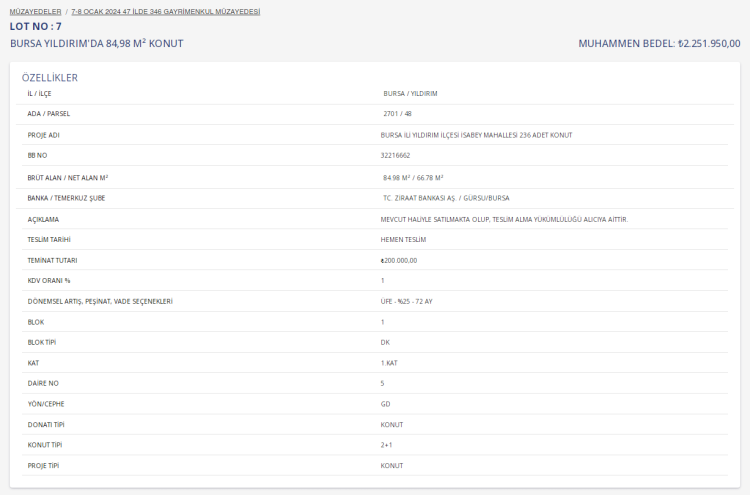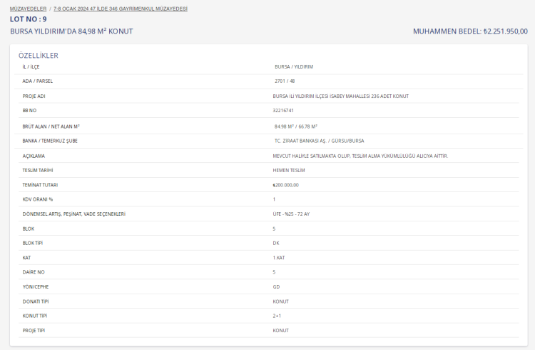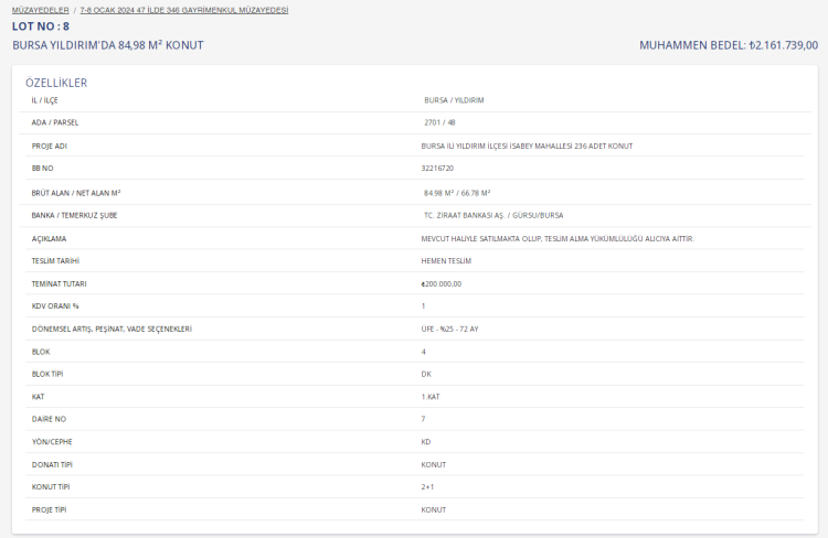 Açık artırma yoluyla satılacak taşınmazlar için teminatlar Ziraat Bankası ve Halk Bankası'na yatırılacak.