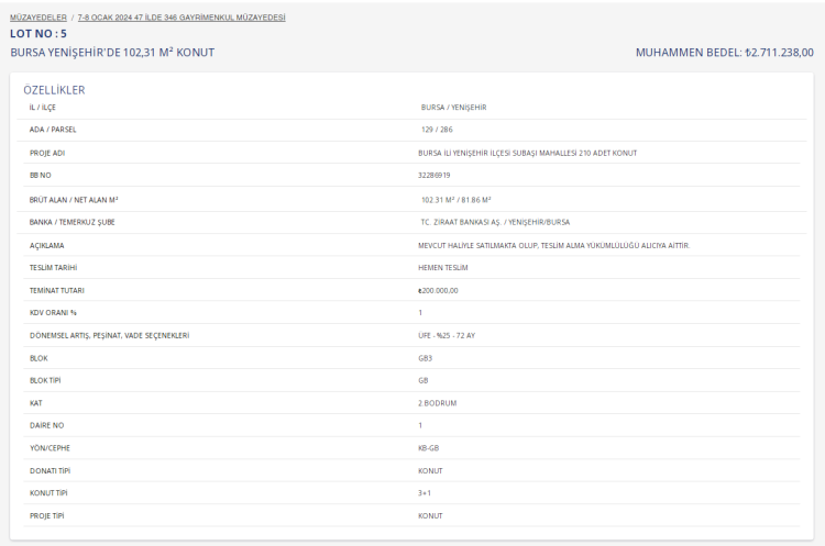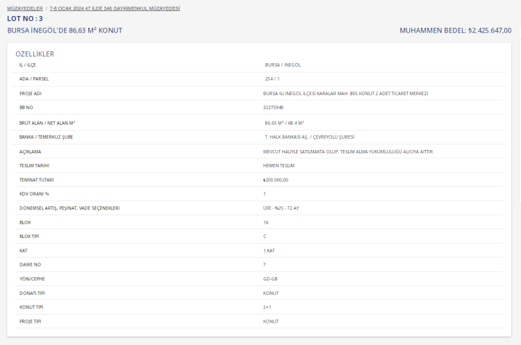 Toplu Konut İdaresi Başkanlığı (TOKİ), Bursa'nın Nilüfer, Yıldırım, Gürsu, İnegöl ve Yenişehir ilçelerinde taksitle daire satışı yapacak. İşte aylık 21 bin TL'den başlayan tutarlarla satılacak o taşınmazlar...
