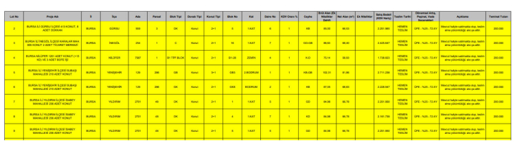 İşte satılacak konutların özellikleri fiyatları...
