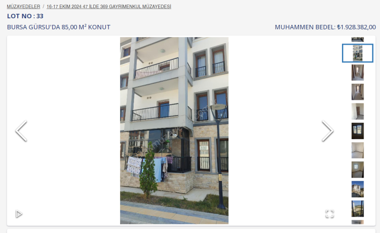 Gürsu'da satışa sunulan satışa sunulan 85 metrekarelik konutun muhammen bedeli 1 milyon 928 bin 382 TL olarak belirlendi.