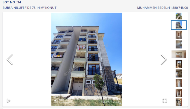 Nilüfer'de satışa çıkarılan 75 metrekarelik daire için ise 1 milyon 580 bin TL talep ediliyor.