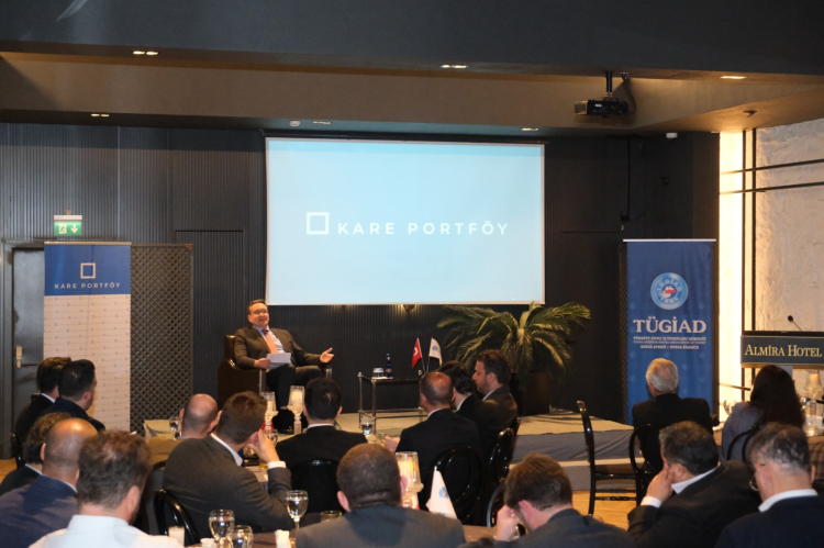 Türkiye Genç İş İnsanları Derneği (TÜGİAD) Bursa Şubesi’nin düzenlediği “TÜGİAD Bursa Buluşmaları” kapsamında, Kare Portföy Yönetimi Genel Müdürü Ümit Kumcuoğlu, Almira Otel’de dernek üyeleriyle bir araya geldi. Yoğun katılımla gerçekleşen etkinlikte Kumcuoğlu, "Yeni Dönemde Ekonomi: Riskler, Fırsatlar ve Stratejiler" başlıklı bir konuşma gerçekleştirdi.