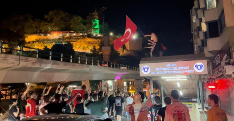 Galibiyet sonrası tüm Türkiye'de olduğu gibi Bursa'da da vatandaşlar sokağa çıktı.