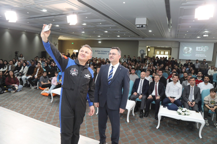 Türkiye'nin ilk astronotu Alper Gezeravcı, Bursa Teknik Üniversitesinde öğrencilerle buluşarak Türkiye'nin insanlı ilk uzay misyonu kapsamında 22 gün süren uzay yolculuğunu ve Milli Uzay Programı kapsamındaki hedefleri anlattı. Uluslararası Uzay İstasyonu'nda gerçekleştirilen bilimsel deneylerden, eğitim sürecine kadar pek çok detayı paylaşan Gezeravcı, gençlere; "Bu bir varış değil başlangıç; bundan sonra bu hikâyeyi siz yazacaksınız" mesajı verdi.