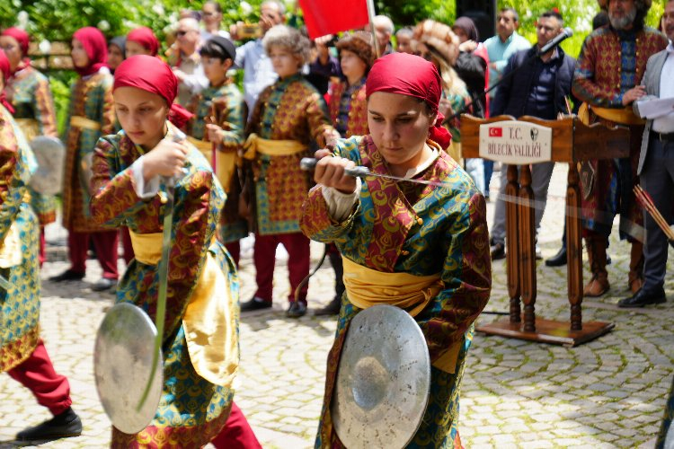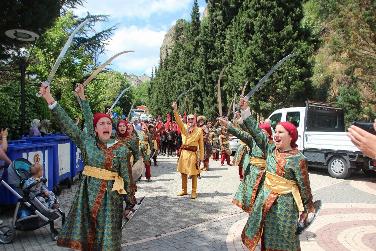 Bursa Geleneksel Okçuluk Spor Kulübü Başkanı Akın Ahu, Türkiye'de bir ilki gerçekleştirdikleri için mutlu olduklarını söyleyerek, "Geçmişte Bursa'mızı simgeleyen sporlardan birisi de Bursa Kılıç Kalkan ekibidir. Bursa'mızda farklı kılıç kalkan örnekleri ve dernekleri vardır. Baktık ki bir mehterin bayanlarını yaptılar, farklı spor dallarının bayanlarını yaptılar biz de dedik ki Bursa'mızın kılıç kalkanının neden bir bayan takımı olmasın. Bursa'da bir ilk olarak dedik böyle bir şey yapalım. Çok şükür bu konuda ciddi bir başarı elde ettik. Kızlarımızın yaş grupları genelde 12 ila 20 arasında değişiyor. Bu gruptaki öğrenci kızlarımızla beraber Bursa'da ve Türkiye'de ilk olan Kılıç Kalkan ekibini kurarak ilk Bilecik fetih yürüyüşünde Şeyh Edebali yürüyüşünde burada sunma imkânı bulduk" dedi.